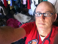 The smell of closet-room was noticeably more foul since I opened the cat’s mouth and got a nice whiff. I wanted to tell her she was living in an inhumane state as well. It was then she said she couldn’t really pay us. Her boyfriend was going to give a credit card over the phone for any treatment. I gave her a long heart-to heart about how she needs to let the cat go and stop his suffering, but she wouldn’t have it. She said that all the other vets said that, bu that’s not what she wanted to hear. Her cat was her beloved. She wanted him to be out of pain. I told her anything I give is temporary, he really needs hospitalization, but his longevity and advanced shocky state is against him. She told me about her mom dying with little or no care in some home somewhere with cancer and no pain meds. She just wanted some for her kitty. In her attempt to show how much life was still in him, she opened a couple cans of food. The cat circled and seemed very interested but, alas, could not partake. He went on whine-creaking and stinking up the air. She went on to tell me the sad story of her life. She lost her 4 bedroom home and was held hostage for 5 days in her own house by crooks. “What?!” This is getting ridiculous I was thinking, when I kid you not, two gunshots go off in the backyard over the fence or VERY nearby. What was that?! It sounded like a .45… She corrected me and stated more like a .38 and then a 9mm. (I’m thinking: why do you know that?!) Her boyfriend was finally reached at work and she handed her disgustingly soiled cell phone to me to get his payment info which I texted to dispatch. I’m thinking. This is going to decline… Decline (dispatch texts me). Great I had been there an hour already and had another appointment back on the Westside. Oops, I discover. The boyfriend repeated the number and I was one digit off. Gave dispatch the correct number…Phew…DECLINED…!?!…At that point I just wanted to put the cat to sleep for free and get the hell outta there…She persists and wants me to treat him. Just get him out of his pain, Doc. Even for a little while. I AM HAVING TEXT WARS WITH DISPATCH over not pre-authorizing payment and for sending me to this forsaken land. All the while the owner is primping herself in the wall mirror(?!?) telling me how she lost everything, her car, she had to move into her boyfriend’s house and then they eventually had to cram into the closet-room while he rented out the rest of the house to the family of six. Oh and then I notice there’s also crippled dog out in the back. Her boyfriend told me over the phone (mine now, since hers had died or the minutes ran out, not sure which) that he could meet me in a few hours and pay cash. But that was not feasible. He could not come up with another credit card. Then he hung up or lost signal or was busted at work for talking on company time. I was so frustrated and felt so bad for the cat I finally agreed to give the cat a big shot of pain killer. Even as I was leaving, was she scrambling through her overflowing (with junk) dresser drawers in search of a valid, non-expired credit card. I had told her if her boyfriend wants to bring the cat to our clinic and some of the payment I would try and save the cat. But for how long? He was 18. She was a lost soul. Said she couldn’t work cause she couldn’t ever show up on time.(What?!?) Or do anything for that matter. I felt sorry for her and her cat and the whole neighborhood. I dodged some bullets and headed back over the hill to Civilization.